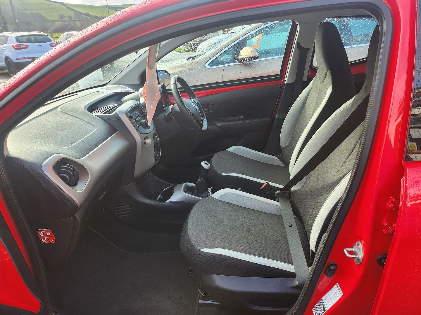 ABSABSAutomatic hazard lightsAutomatic hazard lightsCornering brake controlCornering brake controlCrash test resultsEuro NCAP crash test results: Overall: 4.00, Adult occupant: 80.00, Child occupant: 80.00, Pedestrian: 62.00, Safety assist: 56.00, Version tested: Toyota Aygo 1 x-play 5dr MC, Date tested: 03 Sep 2014Disc brakesTwo disc brakes including two ventilated discsElectronic brake distributionElectronic brake distributionElectronic traction controlElectronic traction controlFront airbagDrivers airbag, passengers airbag with de-activation switchFront seat beltsSeat belt with pre-tensioners on drivers seat and front passenger seatHead restraintsTwo integrated head restraints on front seats, two head restraints on rear seats with height adjustmentHeadlight controlHeadlight controlsystems: height adjustmentHeadlightsHalogen headlights with ellipsoidal lensesIsofix preparationIsofix preparationLow tyre pressure indicatorLow tyre pressure indicatorRear seat beltsSeat belt on driver side rear seat and passenger side rear seatSide airbagFront side airbagSide curtain airbagFront and rear side curtain airbagsStability controlStability controlsystemTechnical